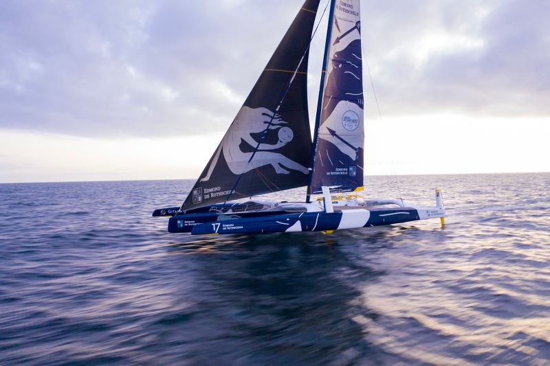 1. MAXI EDMOND DE ROTHSCHILD (Franck Cammas / Charles Caudrelier / Yann Riou) – distance au but : 3 406,6 milles  – vitesse moyenne sur les dernières 30 min : 21,2 nœuds