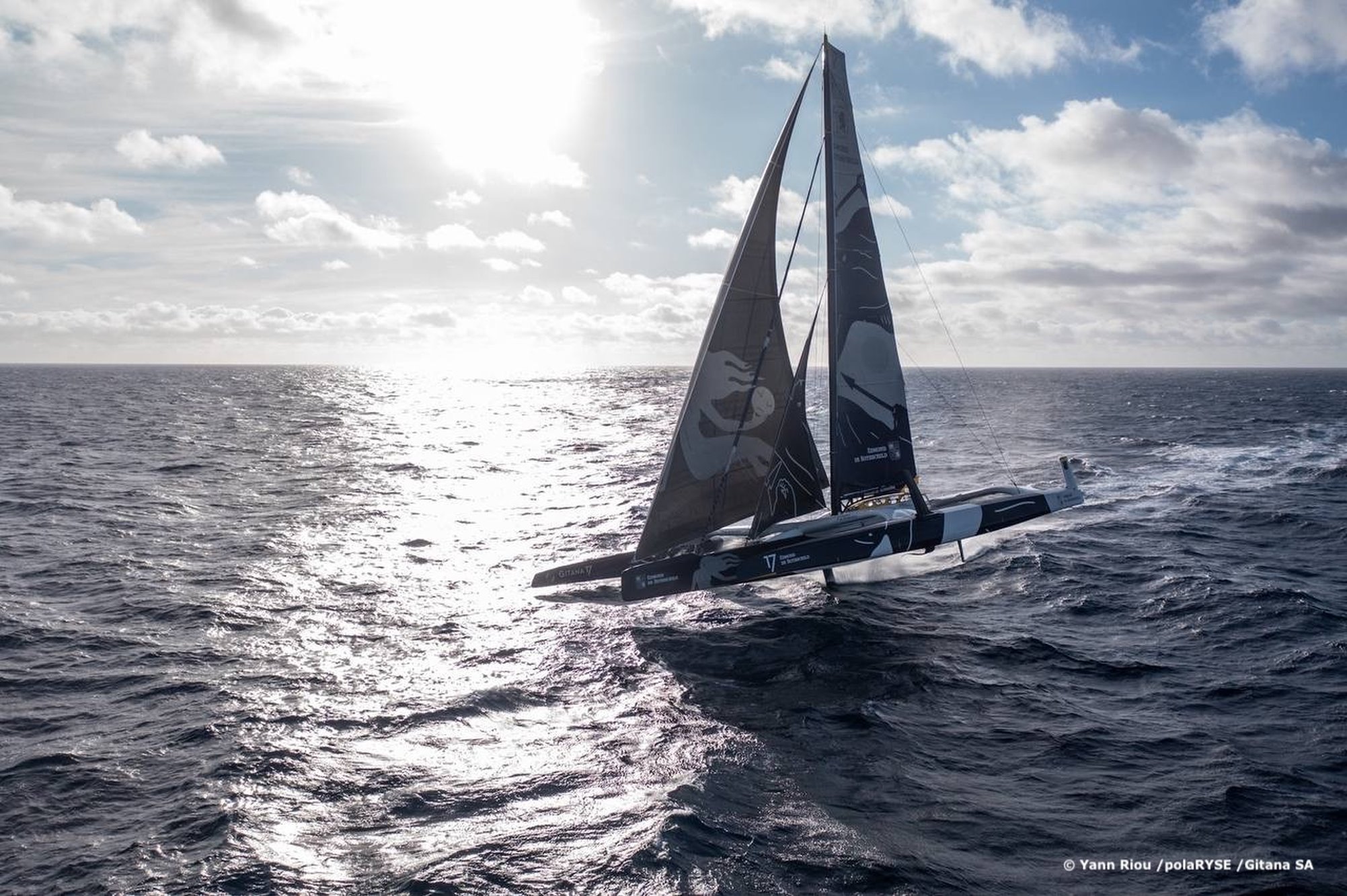 Le Maxi Edmond de Rothschild lancé à pleine vitesse, en vol, dans les lumières du soir le long du Portugal … Yann Riou, l’équipier média que l’on ne présente plus, ne pouvait pas passer à côté de ces conditions.