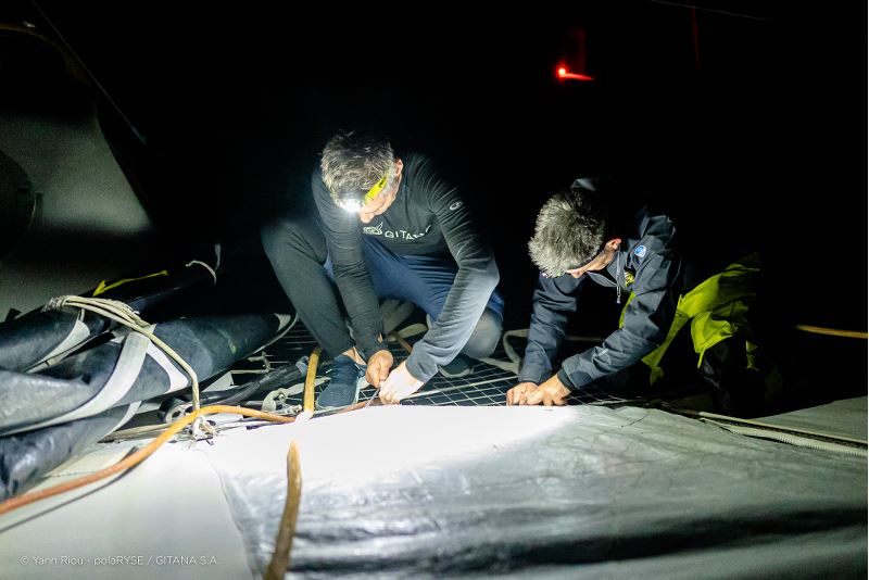 À la sortie du virement de bord, deux groupes se forment : le Maxi Edmond de Rothschild et Banque Populaire sont au contact plus au large, tandis que SVR-Lazartigue choisit de privilégier l’intérieur du DST (dispositif de séparation de trafic interdit à la navigation en course, ndlr) du cap Finisterre. C’est dans cette phase de vitesse au large des côtes ibériques que les hommes de Charles Caudrelier constatent une avarie sur leur safran bâbord. Si cet incident technique ne les oblige pas à un arrêt au stand, il handicapera quelques heures le grand maxi-trimaran aux cinq flèches, comme l’expliquait son skipper : « Au passage du cap Finisterre, dimanche au petit matin après le front, nous étions bien au contact avec Banque Populaire. Mais malheureusement dans la descente nous nous sommes fait décrocher. Nous avons eu quelques ennuis techniques sur le safran bâbord, qui nous empêchaient d’aller vite tribord amure. Heureusement, David (Boileau, ndlr) a pu résoudre tout ça la nuit dernière dans le petit temps au passage de la dorsale et le Maxi Edmond de Rothschild est à nouveau à 100 % de son potentiel. »
