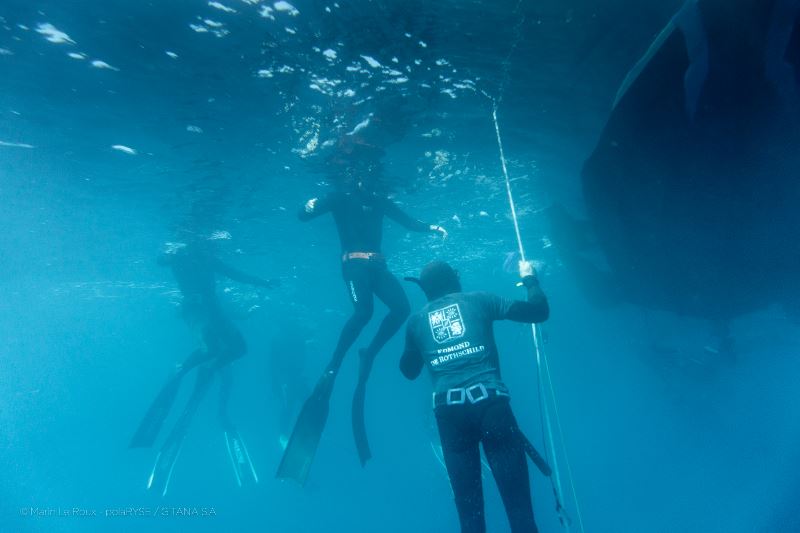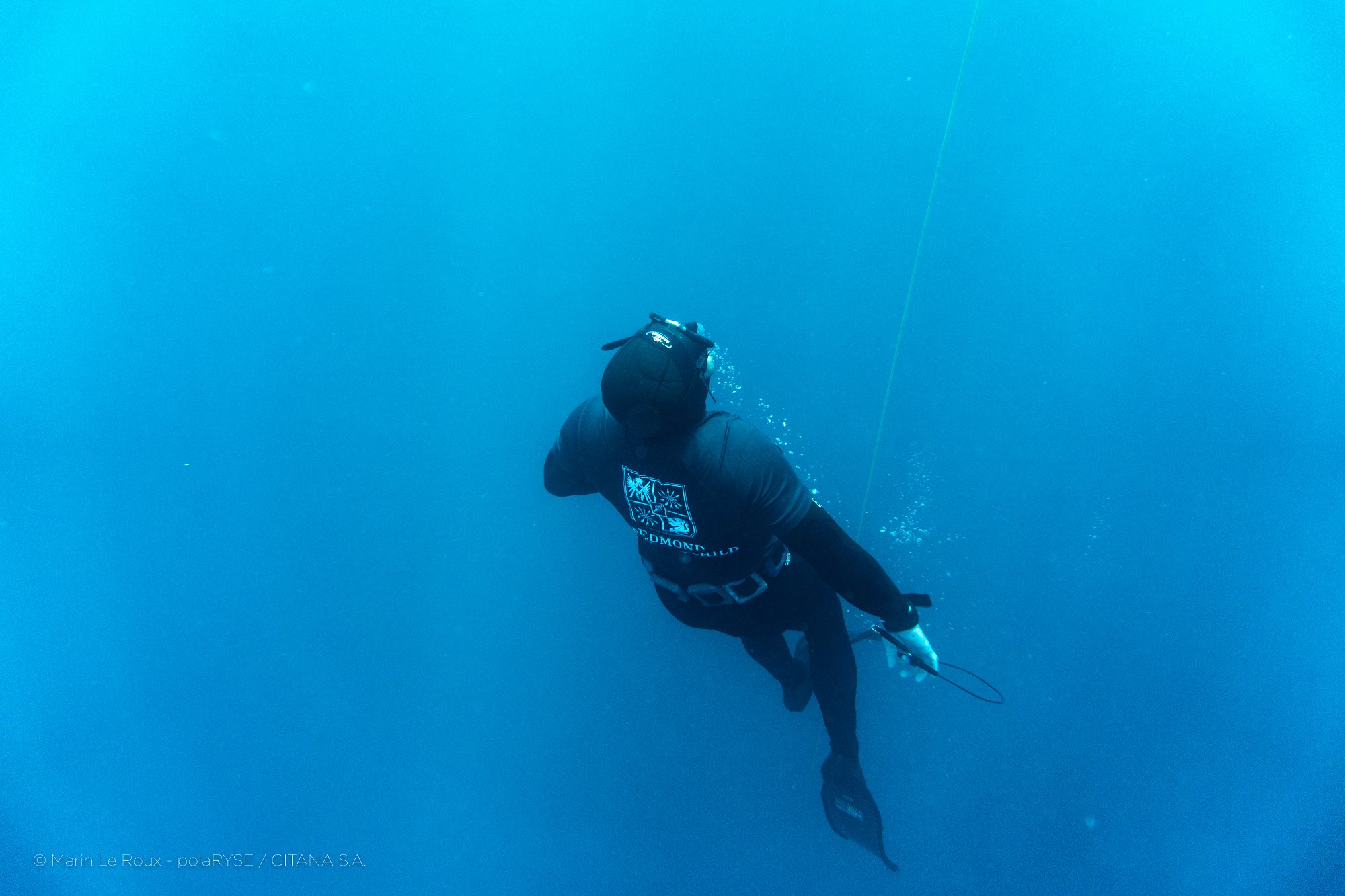 Au large de Beg-Meil, l’archipel des Glénan est l’un des terrains de jeu favori de Charles Caudrelier. Mais si c’est sur l’eau qu’il brille en régate, c’est sous l’eau et en apnée qu’il aime s’évader. Sa passion pour cette discipline de l’ombre a favorisé la rencontre avec Arnaud Jerald, jeune champion du monde d’apnée qui ne cesse de surprendre et de repousser les limites des records lors de ses tentatives : -120 mètres en bi-palmes en août dernier ! ou encore plus récemment avec ses -123 mètres en monopalme lors des championnats du monde il y a quelques semaines en Turquie.