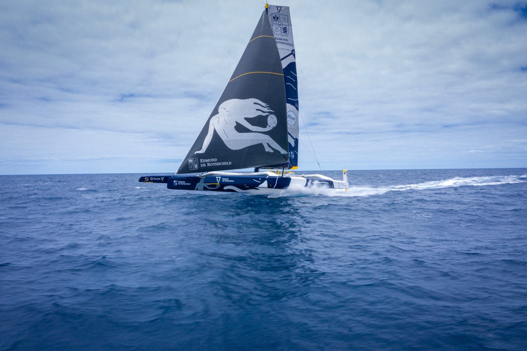 - Maxi Edmond de Rothschild (F. Cammas / C. Caudrelier) 337,8 milles de l’arrivée