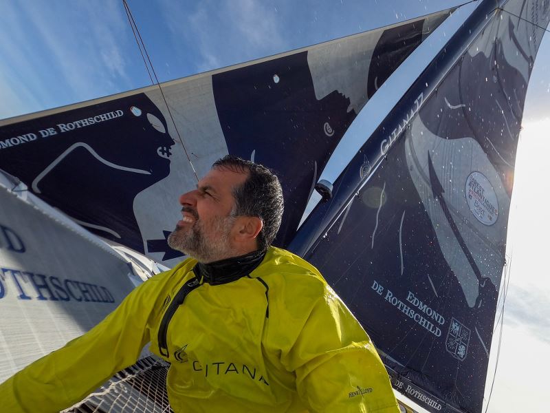 Durant deux jours, Franck Cammas et Charles Caudrelier ont enchaîné les empannages pour exploiter le couloir de vent au Sud de l’anticyclone de Sainte-Hélène et en bordure de la zone d’exclusion des glaces imposée par les organisateurs pour des questions de sécurité. Face caméra les skippers du Maxi Edmond de Rothschild reviennent sur le casse-tête météo de ces derniers jours. Mais, ce mercredi matin, le contournement anticyclonique est derrière eux et Gitana 17 a pu enfin mettre cap au Nord-Est en direction de la prochaine marque de parcours de Cape Town, en Afrique du Sud.