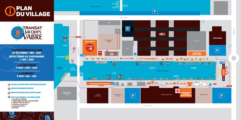 À monture hors normes, dimensions exceptionnelles… Du fait de sa largeur et plus particulièrement des élévateurs qui dépassent de part et d’autre de la plateforme, le Maxi Edmond de Rothschild fait cavalier seul à l’extérieur du Bassin Paul Vatine. Jusqu’au départ, il sera en effet amarré quai de Marseille dans le bassin de l’Eure au niveau de l’entrée n°1, à seulement quelques minutes à pied du village officiel de la course. Depuis le bassin Vatine, pour venir admirer ce maxi-trimaran de nouvelle génération au profil résolument innovant, les visiteurs devront emprunter le pont des Docks puis la rue Jean Maurel ; un clin d’œil qui n’est pas pour déplaire à l’équipe aux cinq flèches, qui était très proche du célèbre navigateur et directeur de course.