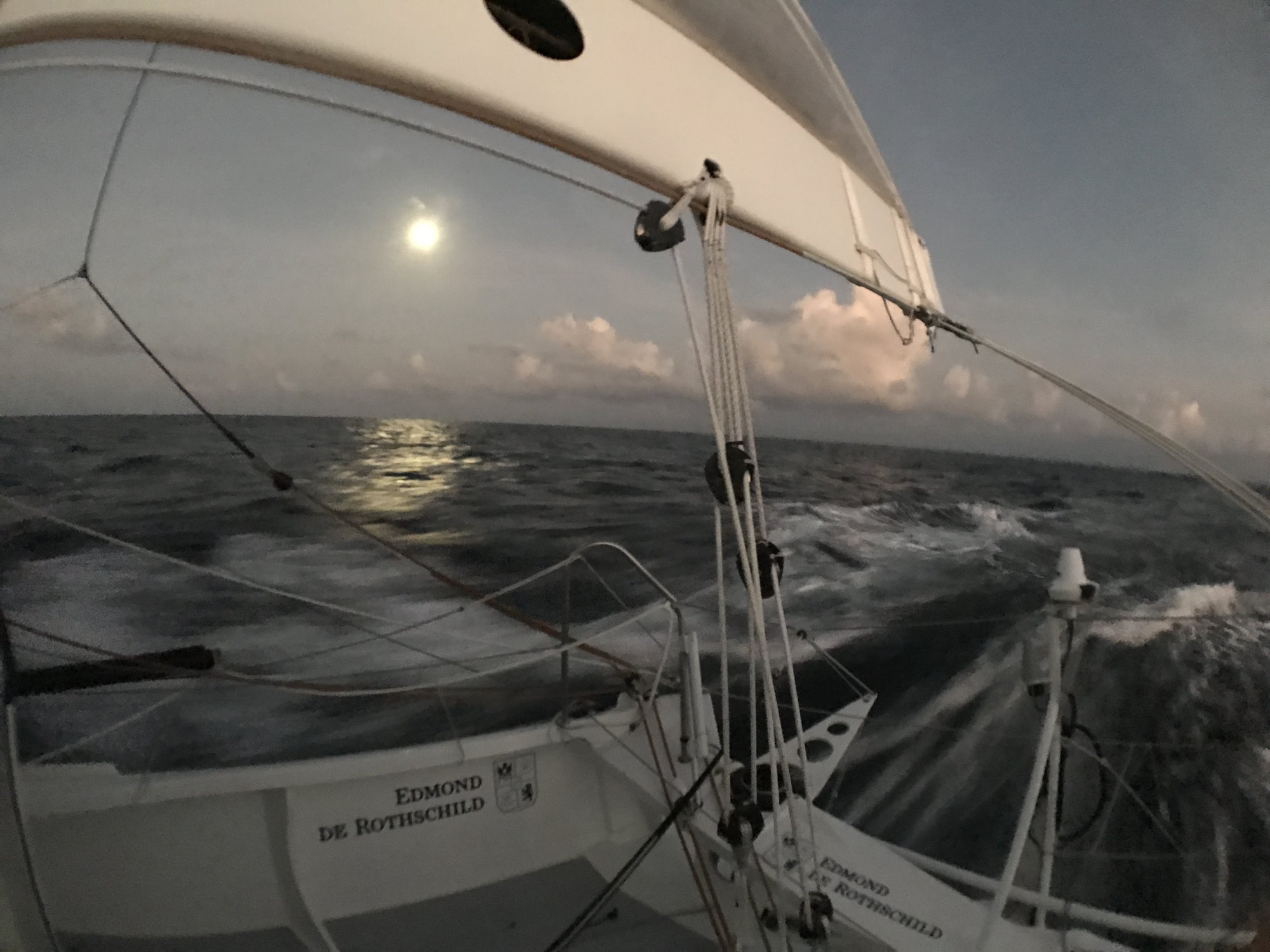 Joint par son équipe technique à la mi-journée, Sébastien Josse relatait sa nuit sous la  « super extra » lune : « Malheureusement je n’ai pas vraiment pu profiter du phénomène, uniquement en fin de nuit. Avant, il y avait pas mal de masses nuageuses dans la zone et j’ai même été absorbé par un grain qui a laissé filer Vincent (Riou, ndlr) et Armel (Le Cléac’h, ndlr). Rien de dramatique mais cela explique en partie mon décalage aujourd’hui. Je vais bien profiter de cette journée plus calme pour me reposer et mettre de l’ordre à bord car le vent va rentrer progressivement.»