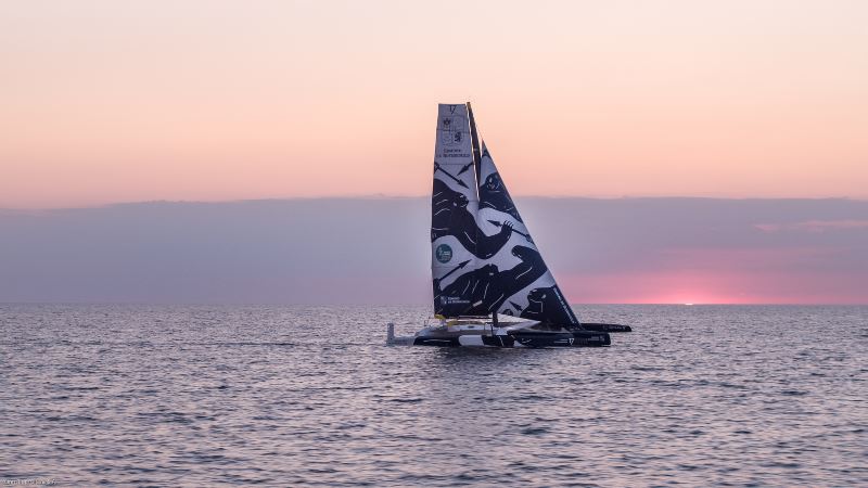 Hier, au large de Lorient, Franck Cammas et Charles Caudrelier réalisaient leur toute première sortie à la barre du Maxi Edmond de Rothschild ; un moment très attendu par les deux marins récemment nommés. Cette navigation de mise en place parfaitement menée, le duo confirmait à son retour à quai sa volonté de pouvoir rejoindre la flotte des Ultimes – Sobedo Ultim 3 et Actual Leader – dès le lendemain. « Hier, c’était une très bonne première journée. Les conditions médium étaient quasi idéales pour passer un maximum de choses en revue et avoir nos premières sensations de vol. Le bateau est extrêmement puissant et bien dans ses lignes. J’ai été agréablement surpris à la barre » confiait Franck Cammas, avant d’ajouter : « Nous avions l’ArMen Race en tête mais il fallait pouvoir se caler dans un timing serré et ambitieux. L’équipe a su parfaitement gérer cela car malgré l’intensité de la journée d’hier, le bateau est prêt à naviguer et nous n’avons eu aucun problème à constater. Ca avance dans le bon sens et j’espère que l’on pourra très vite se concentrer sur les détails qui font la différence. Avec ce timing, nous ne sommes pas encore réglés dans une démarche de régates, ça reste une navigation de mise en place, mais c’est toujours plus efficace de le faire en course et si possible avec des concurrents autour. Une nuit en mer c’est toujours bien pour tester les systèmes, prendre ses marques sur la vie à bord, et surtout faire des heures sur l’eau, ce qui est la base. Malheureusement, il n’y aura pas beaucoup de vent.»