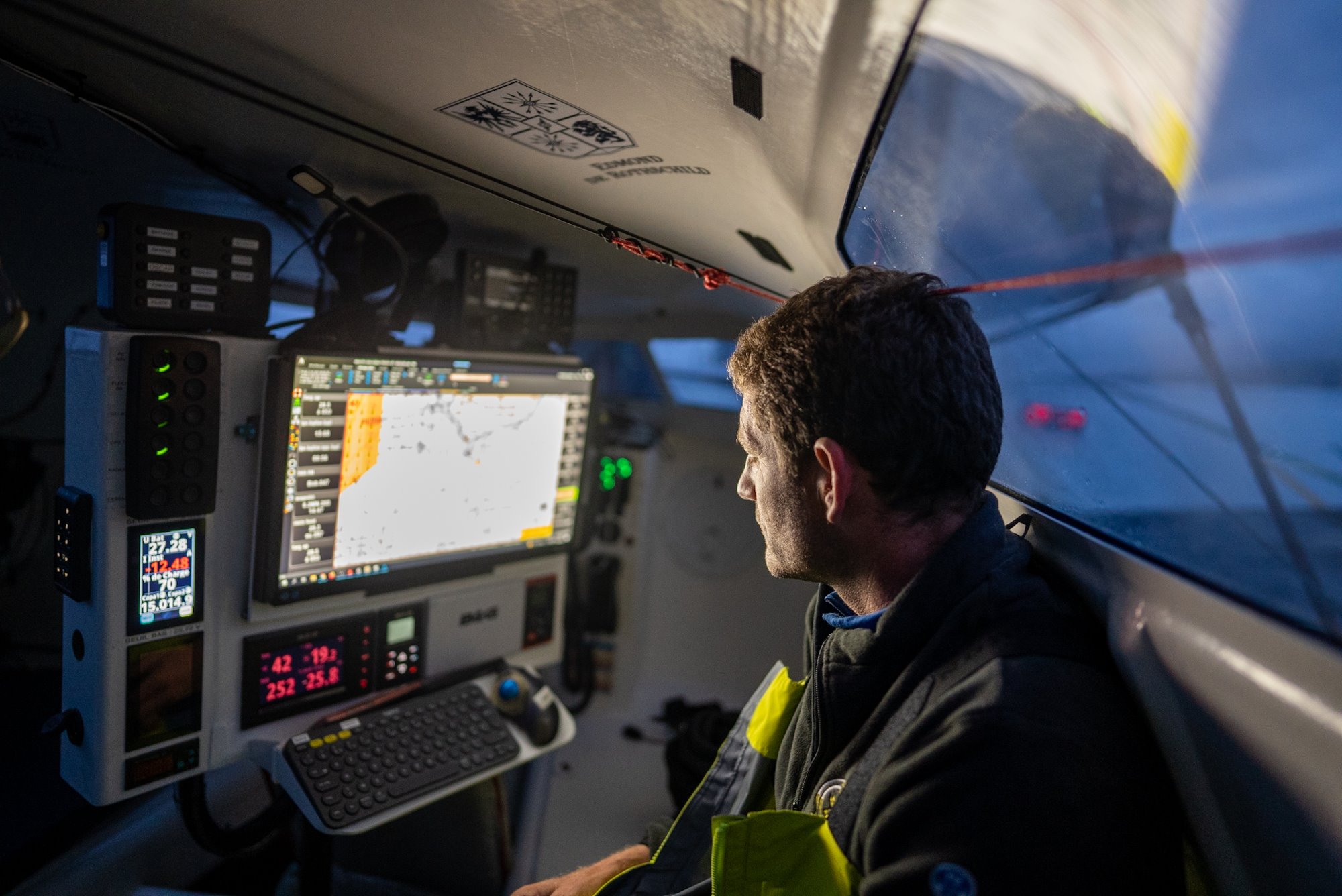Charles Caudrelier : « Oui, nous avons passé le rocher du Fastnet il y a quelques minutes, en tête de flotte, avec une avance d’au moins 46 milles sur le deuxième, ce qui est plutôt bien. Nous sommes très contents. Nous avons très bien navigué depuis le début et nous sommes très fiers de ce que nous avons fait. Le bateau va vite et nous n’avons pas fait trop d’erreurs sur la navigation je pense, et maintenant nous faisons route vers les Scilly. La course est loin d’être finie, il reste 300 milles à parcourir avec du vent léger au portant en prévision. Il n’y a pas de grandes options mais il pourrait y avoir des choix à prendre autour des Scilly peut-être. Pour ce qui est de l’arrivée, il y aura des empannages à faire, ça pourrait être compliqué, nous savons que c’est un endroit complexe à Cherbourg, surtout dans le vent léger avec du courant. Nous devons rester concentrés sur la vitesse du bateau, en essayant d’augmenter notre avance et nous verrons ce qui se passe. »
