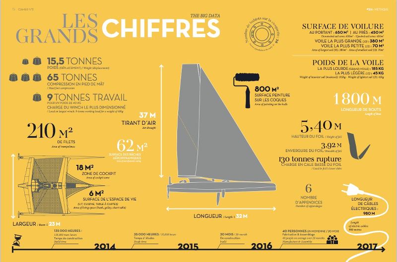 L’anecdote est loin d’être uniquement logistique, car ces problématiques XXL démontrent si besoin était que ces géants des mers ont définitivement basculé dans une nouvelle ère. En effet, ce qui détermine la puissance d’un trimaran, et par conséquent toute la difficulté à le mener pour un homme seul, est bien sa largeur. Pour mémoire, lors de la dernière édition, seuls deux bateaux avaient dû élire domicile hors du bassin Vauban.