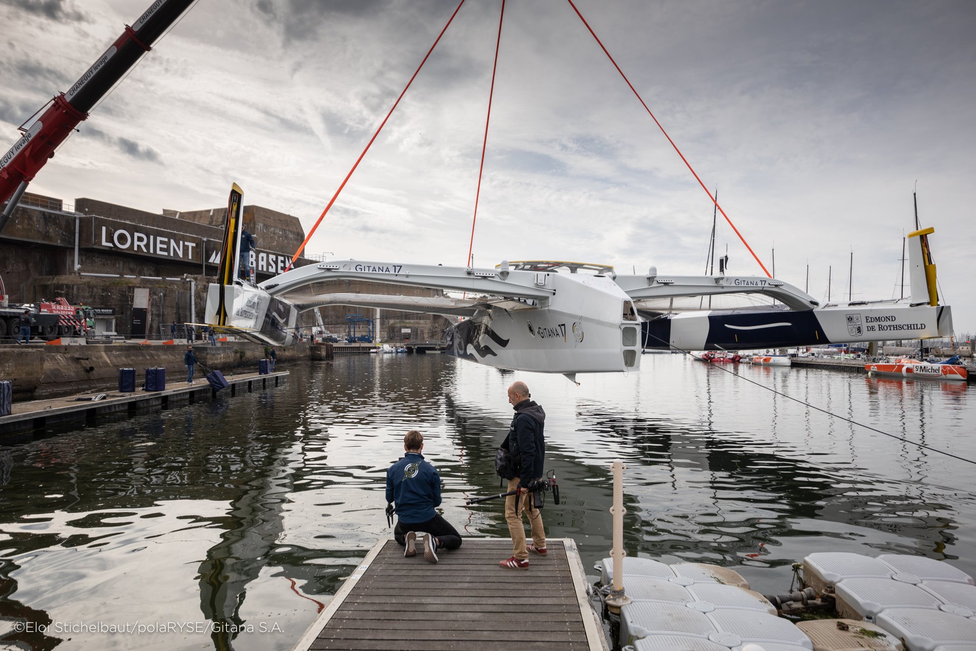 Il n’y a aucun doute, la saison des grands multicoques océaniques est lancée! Après Actual Leader la semaine dernière, Macif hier, c’était au tour du Maxi Edmond de Rothschild de retrouver le chemin de l’océan ce jeudi 23 mai au matin sur la base lorientaise. Après six mois de chantier, consacrés à la réparation de l’étrave tribord perdue lors de la Route du Rhum, tout autant qu’à l’optimisation de la plateforme du géant de 32 mètres, l’équipe était impatiente de retrouver le dernier-né des Gitana dans ses lignes. Charles Caudrelier, l’un des deux nouveaux skippers de l’écurie, était aux premières loges pour assister à ces moments toujours forts en émotions. Tandis que Franck Cammas a suivi ce retour à l’eau à distance car il entre en lice ce jour sur le premier rendez-vous de la saison du GC32 Racing Tour. Les deux marins seront réunis dès la semaine prochaine pour des navigations au large de leur port d’attache.