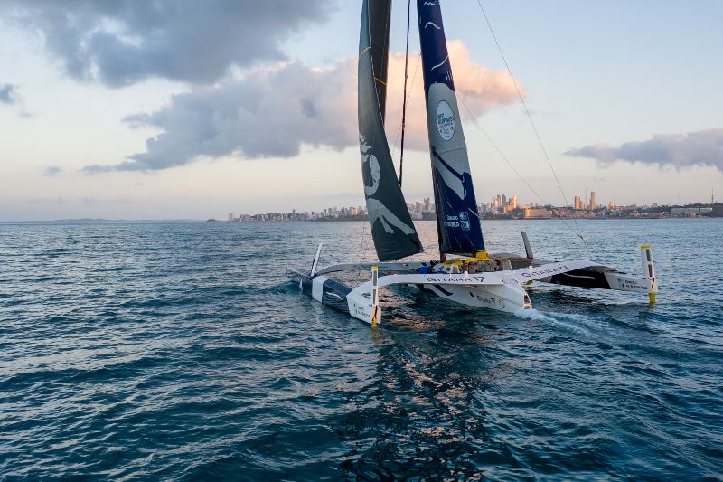 L’élan retrouvé et l’euphorie du retour en course seront pourtant vite stoppés au large des côtes brésiliennes, où le duo Cammas / Caudrelier va devoir négocier une zone de transition sans vent plus longue que prévu. Au large de Porto Seguro, les deux marins voient impuissants leurs concurrents s’échapper et compteront dans la journée plus de 400 milles de retard ! Mais la voile est un sport de patience et à l’échelle de telles machines 400 milles ne représentent rien de rédhibitoire surtout quand un enchaînement de faits de course s’en mêle.