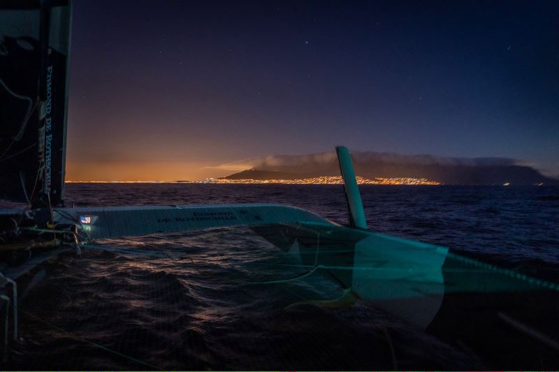 Pour valider ce second tronçon de la Brest Atlantiques, le Maxi Edmond de Rothschild doit enrouler Robben Island mais l’exercice n’est pas si simple car le vent est très instable, voire erratique. Un passage à nouveau magnifiquement orchestré par Marcel van Triest. Les hommes hument les odeurs de la terre et quittent les lumières de Cape Town en tête de la flotte. Macif qui pointe à 90 milles, effectue, lui, une courte escale technique et Actual Leader en profite pour se faufiler en seconde position. Sodebo qui a perdu dans un choc un bout du flotteur tribord en plein Atlantique Sud s’arrête également. Après investigations de l’équipe technique, le foil est aussi endommagé et l’abandon s’impose.