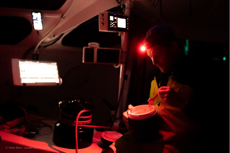 De nature discrète, Charles Caudrelier n’est pas le marin le plus volubile de la flotte et sur ce tour du monde il est parfaitement fidèle à sa réputation. Simple et direct dans ses échanges avec la terre, il s’excuse souvent tout en assumant parfaitement son profil de compétiteur insatiable : « Je n’ai pas fêté le cap Leeuwin, désolé, mais j’étais bien crevé de toutes les manœuvres de ces derniers jours le long de la Zone d’Exclusion Antarctique. J’avais des petits soucis techniques à régler, j’ai dû démonter un winch, et je n’ai pas beaucoup dormi. Du coup les moments un peu plus calmes j’ai essayé de les consacrer à des phases de repos, et il n’y en a pas eu beaucoup. J’ai eu un petit coup de mou ces dernières 24h, avec un bon mal de tête. Je pensais que c’était l’eau mais, au final, je manquais de sommeil et je payais sûrement l’effort. Là j’ai pu récupérer et ça va beaucoup mieux », assurait le marin.