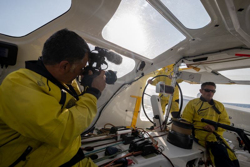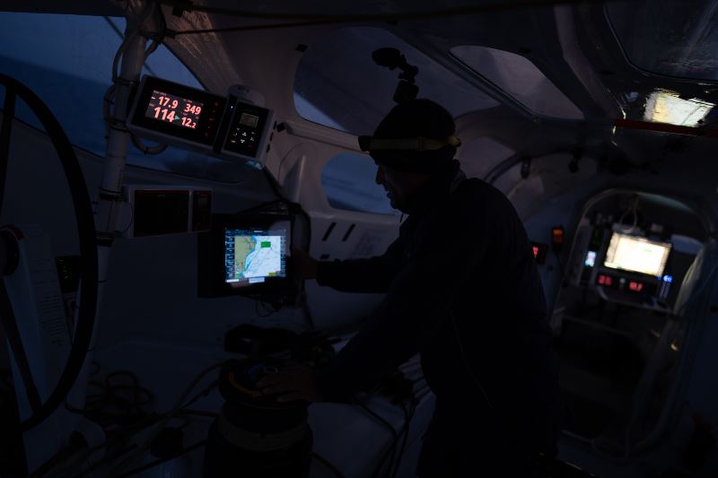 Morgan, au réveil : « Ce petit passage entre Fuerteventura et Lanzarote était tonique, on a eu des conditions bien engagées, assez variables avec des accélérations et du relief, c’était plutôt intense, et c’est ce qui fait que j’ai bien dormi d’ailleurs ces dernières heures. C’est quand même assez exceptionnel sur ces bateaux-là d’avoir autant de proximité avec un concurrent, encore plus au bout de 3 jours de course et en contournement d’une île. Ce sont des moments uniques. Pendant ce passage on s’est relayé à la barre avec Franck. C’était des pointes à plus de 40 nœuds, avec peu de lune, peu de repères visuels donc c’est toujours un peu stressant et engagé, mais c’est du bon stress et du bon engagement donc c’est bien ! Petite frustration quand même de ne pas être ressorti devant Banque Populaire parce qu’on avait une petite avance sur eux mais bon, ils ont été meilleurs que nous sur la trajectoire. Mais ça restera un bon moment, un bon souvenir et la course est encore assez longue pour pouvoir se rattraper, il y a de quoi faire. »