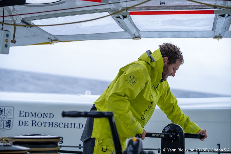 C’est une ambiance studieuse à bord, j’essaie de me reposer entre les manœuvres qui sont assez fatigantes et de faire avancer le bateau sans trop le faire souffrir. Ça c’est le gros challenge, étant donné l’avance, de maintenir une bonne vitesse pour rester dans le même système météo mais sans aller trop vite non plus, donc je suis tout le temps entre le frein et l’accélérateur : voilà mes journées… Je m’occupe aussi beaucoup du Maxi Edmond de Rothschild. Le réviser, checker 2 ou 3 trucs quand je peux. L’équipe technique m’a dressé une liste détaillée après le passage de Bonne-Espérance et chaque jour je me mets une petite mission d’aller vérifier une partie du bateau. Pour l’instant tout est bien, c’est plutôt pas mal. On a trouvé des petites choses mais que j’ai réparées, des petits détails comme des serrages mais rien de grave pour le moment. »