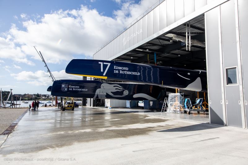 De retour à Lorient il y a quinze jours, après sa fin de tentative de Trophée Jules Verne suite à la casse d’un safran de flotteur, l’heure est désormais au chantier pour le Maxi Edmond de Rothschild. Ce début de semaine marque en effet la sortie d’eau de la plateforme et son transfert dans la base technique du Gitana Team, non loin de la cité de l