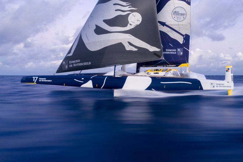 1. MAXI EDMOND DE ROTHSCHILD (Franck Cammas / Charles Caudrelier / Yann Riou) – distance au but : 2 358,7 milles – vitesse moyenne sur les dernières 30 min : 22,7 nœuds