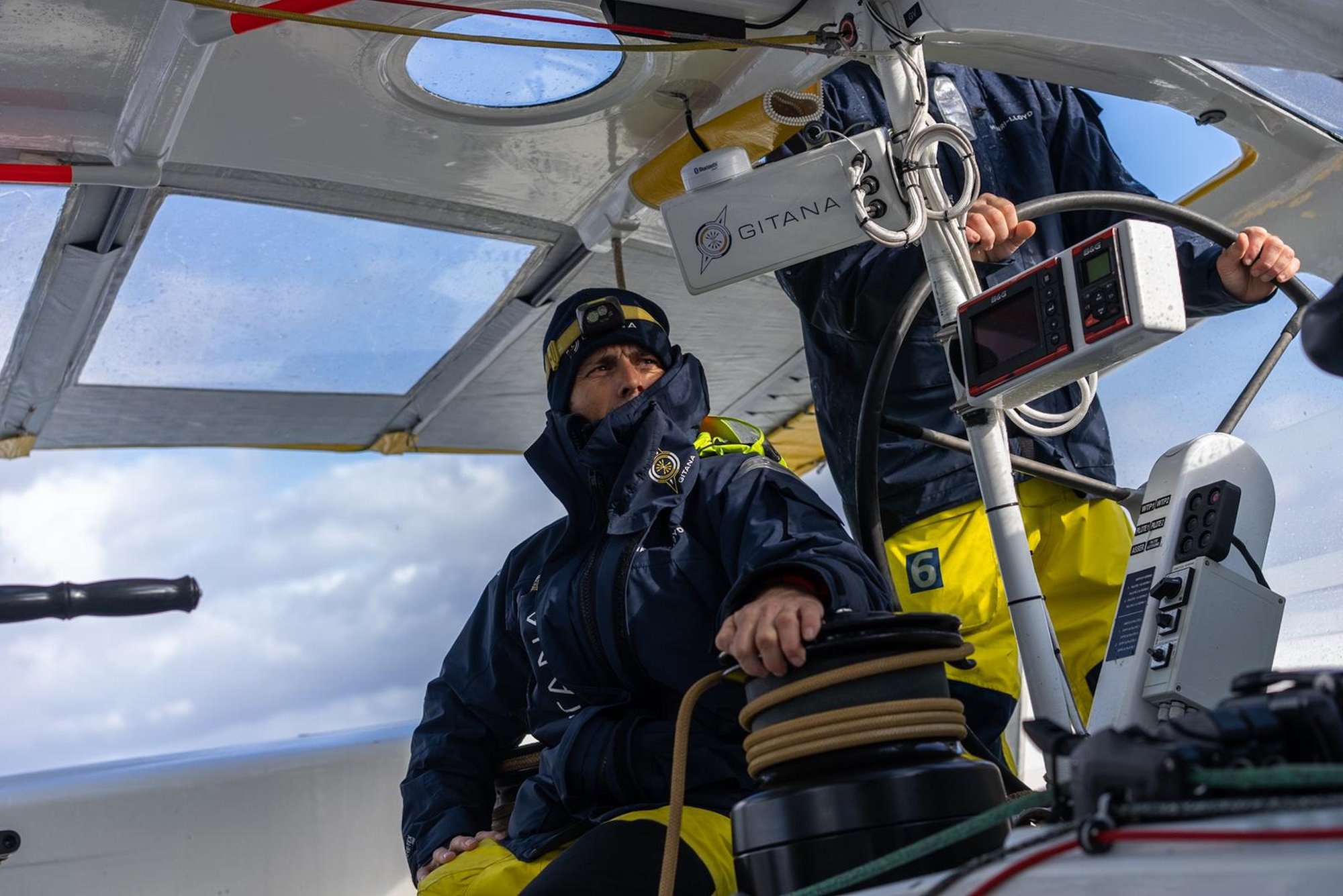 Pour mieux comprendre ce qui se joue actuellement au large des côtes bretonnes, nous avons interrogé cet après-midi Erwan Israël, l’un des routeurs de Gitana 17, qui se relaye H24 avec Stan Honey et Chris Bedford depuis leur QG lorientais : « Les hautes pressions viennent buter contre la terre et se retrouvent bloquées dans le golfe de Gascogne car les trains de dépressions sont anormalement sud dans l’Atlantique pour cette période. Nous n’avons donc pas d’autres choix que de traverser la dorsale anticyclonique. L’objectif est de passer sous la bordure Est de l’anticyclone pour retrouver du vent plus soutenu et progresser vers Finisterre. Depuis hier, nous avons toujours eu moins de vent qu’annoncé par nos prévisions météos. Ce sont des conditions fatigantes car stressantes pour les marins » ajoutait Erwan, soucieux de la stratégie météorologique tout autant que de l’état de forme des deux skippers du maxi-trimaran aux cinq flèches.