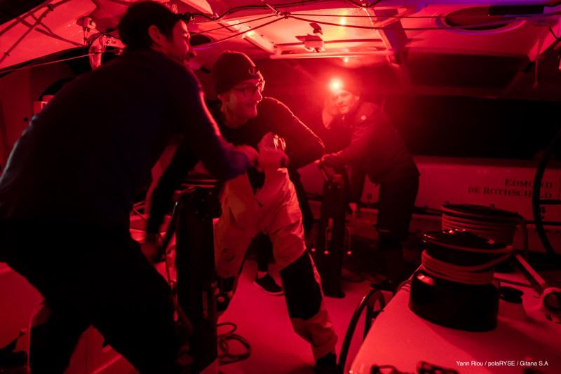 Le regard tourné vers l’arrivée, les hommes du Gitana Team ne manquent pas de contrôler dans le rétroviseur leur adversaire direct : « Banque Populaire est à une vingtaine de milles pour l’instant mais il a un décalage qui lui permet peut-être d’avoir un meilleur angle, donc il y a toujours un risque parce qu’à quelques degrés près le bateau accélère beaucoup. Là on est à peu près à 60 degrés du vent, on navigue à 30 nœuds et on sait que si on est à 65 degrés on avance plutôt à 35 nœuds. Donc l’enjeu est là ! », confiait le skipper du Maxi Edmond de Rothschild.
